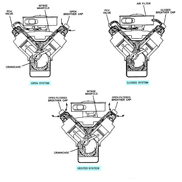 Hier wird komplett ohne PCV gearbeitet und somit werden auch die Vorteile nicht genutzt. In der Praxis sammelt sich ÖL in den Entlüftern und tropft sogar im Extremfall auf den Motor und wird dort noch verbrannt.