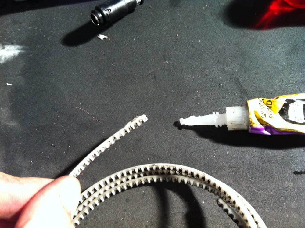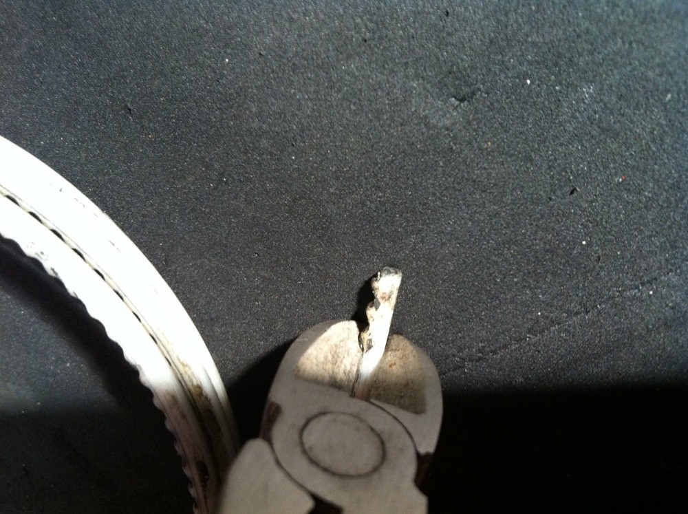 Da das Ende aber abgebrochen war, musste eine neue Verbindung her. Zunächst habe ich die verbliebenen Reste aus der Hülse entfernt und die Kunststoffstrippe ein kleines Stück gekürzt.
