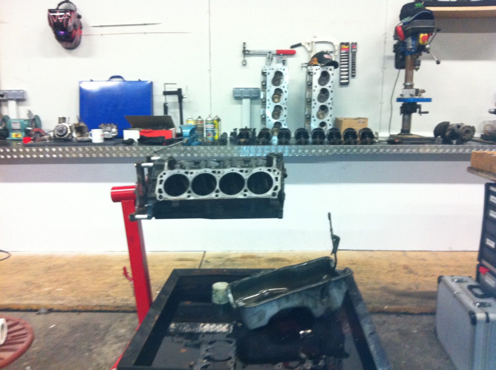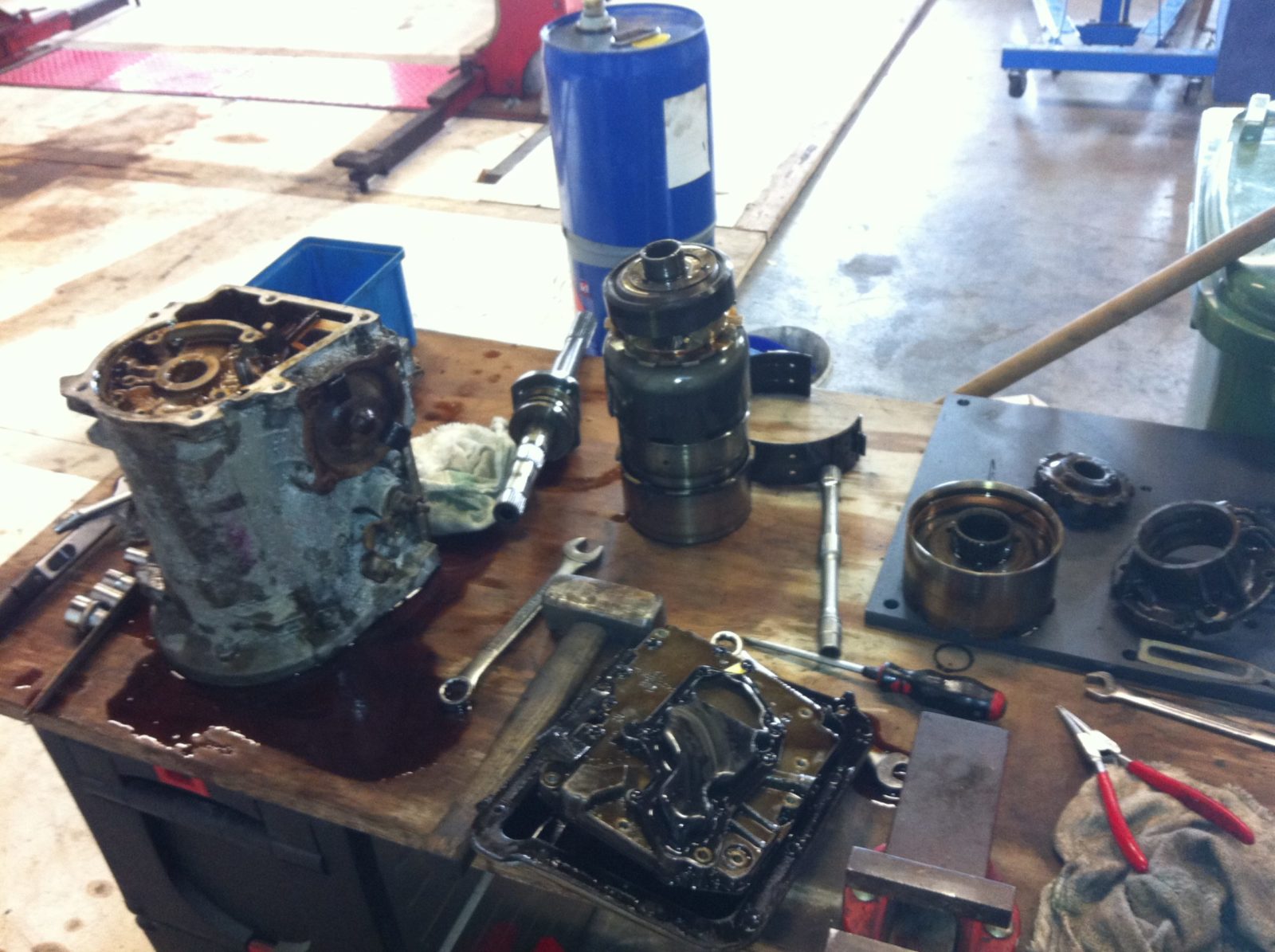 Als Erstes werden Motor und Getriebe ausgebaut und zerlegt.