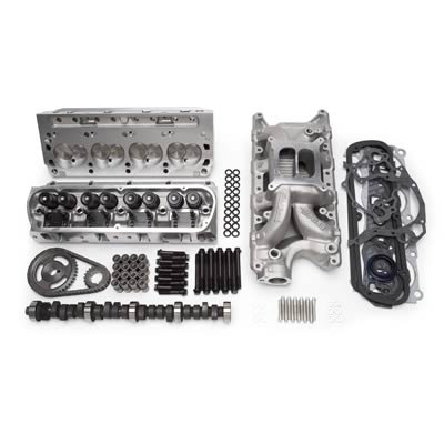 Die Firma Edelbrock bietet hierbei eine recht einfache Lösung. Es wird ein Paket angeboten, was aus kompletten Zylinderköpfen, Nockenwelle, Hydrostösseln, Ansaugspinne sowie Steuerkette und weiteren Kleinteilen besteht. Diese Edelbrock-Power-Package Top-End Kits gibt es für verschiedene Motorvarianten. Wir haben hier mal das Kit 2091 für den Ford 289,302 getestet.