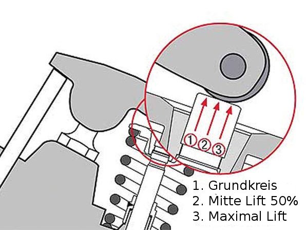 Der Vorteil der Rollernockenwellen ist die Möglichkeit, bei relativ kleinem Lift das Ventil länger offenzuhalten.